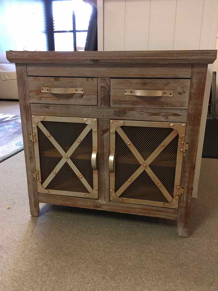 Rustic 2 Door, 2 Drawer, Gold Accent Cabinet