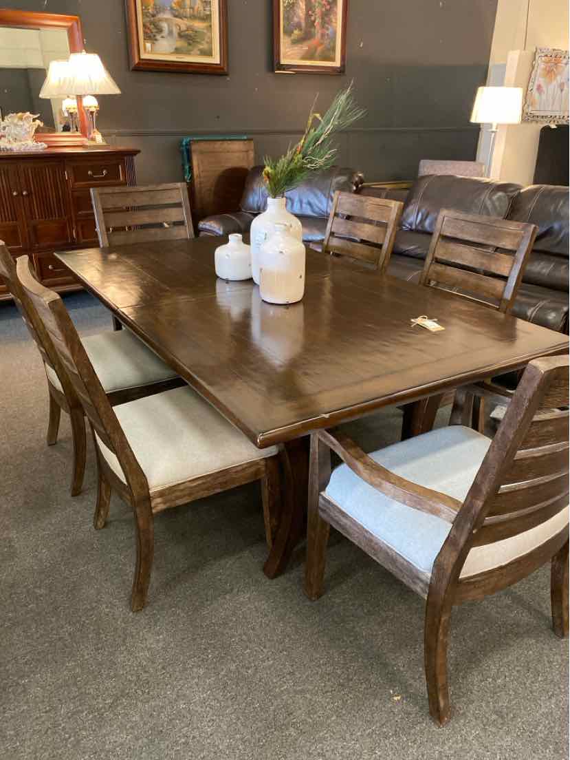 Dining Table (2 Leaves) - 6 Chairs - 2 Arm