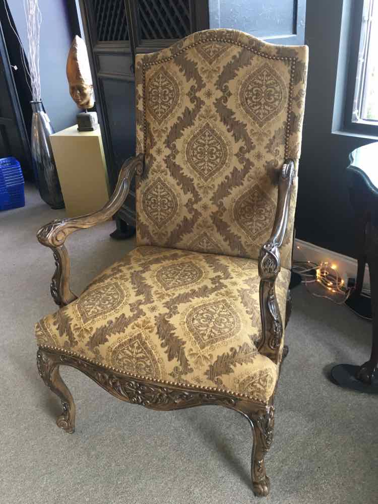 Ivory/Mocha Arm Chair, Wood Frame