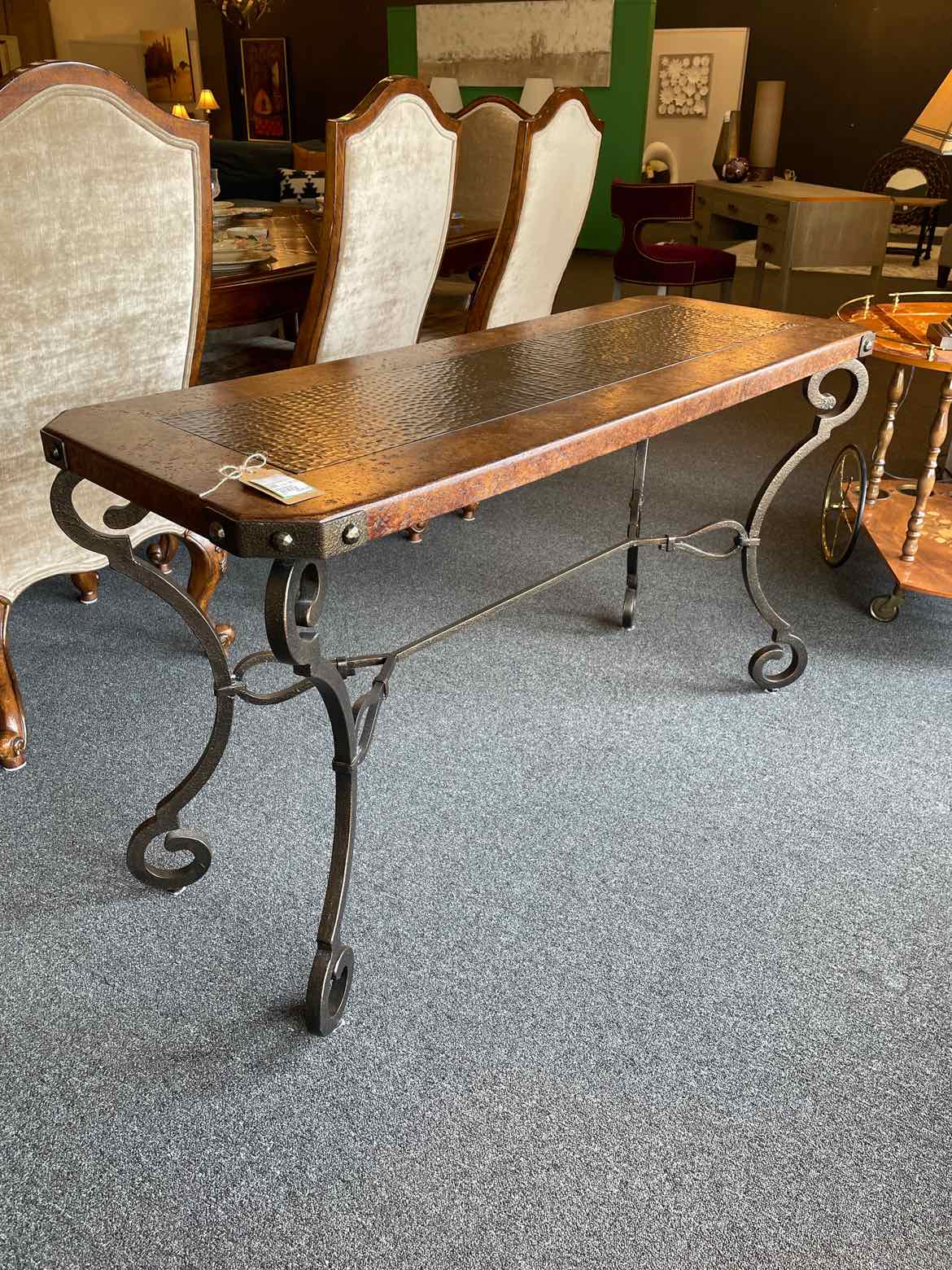 Hammered Metal Top Console