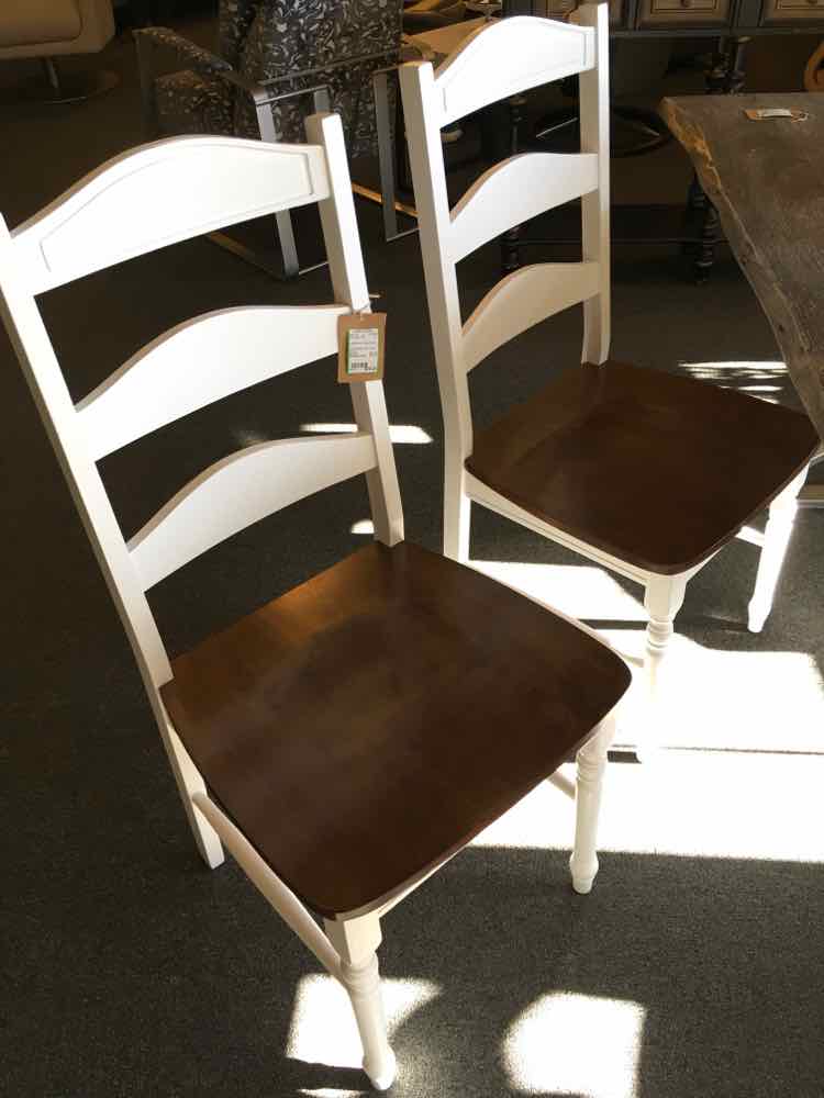 Ladder Back White/Brown Dining Side Chairs (PAIR)