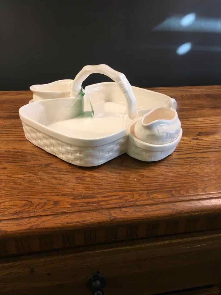 Serving Berry Basket With Sugar & Creamer