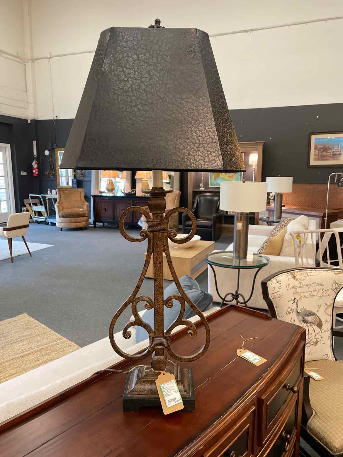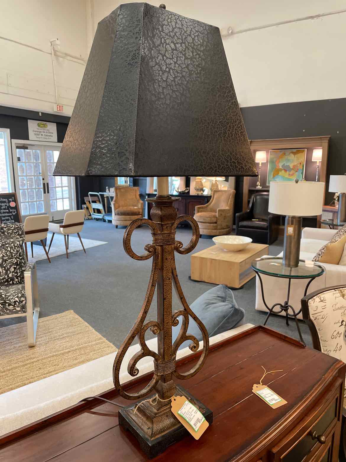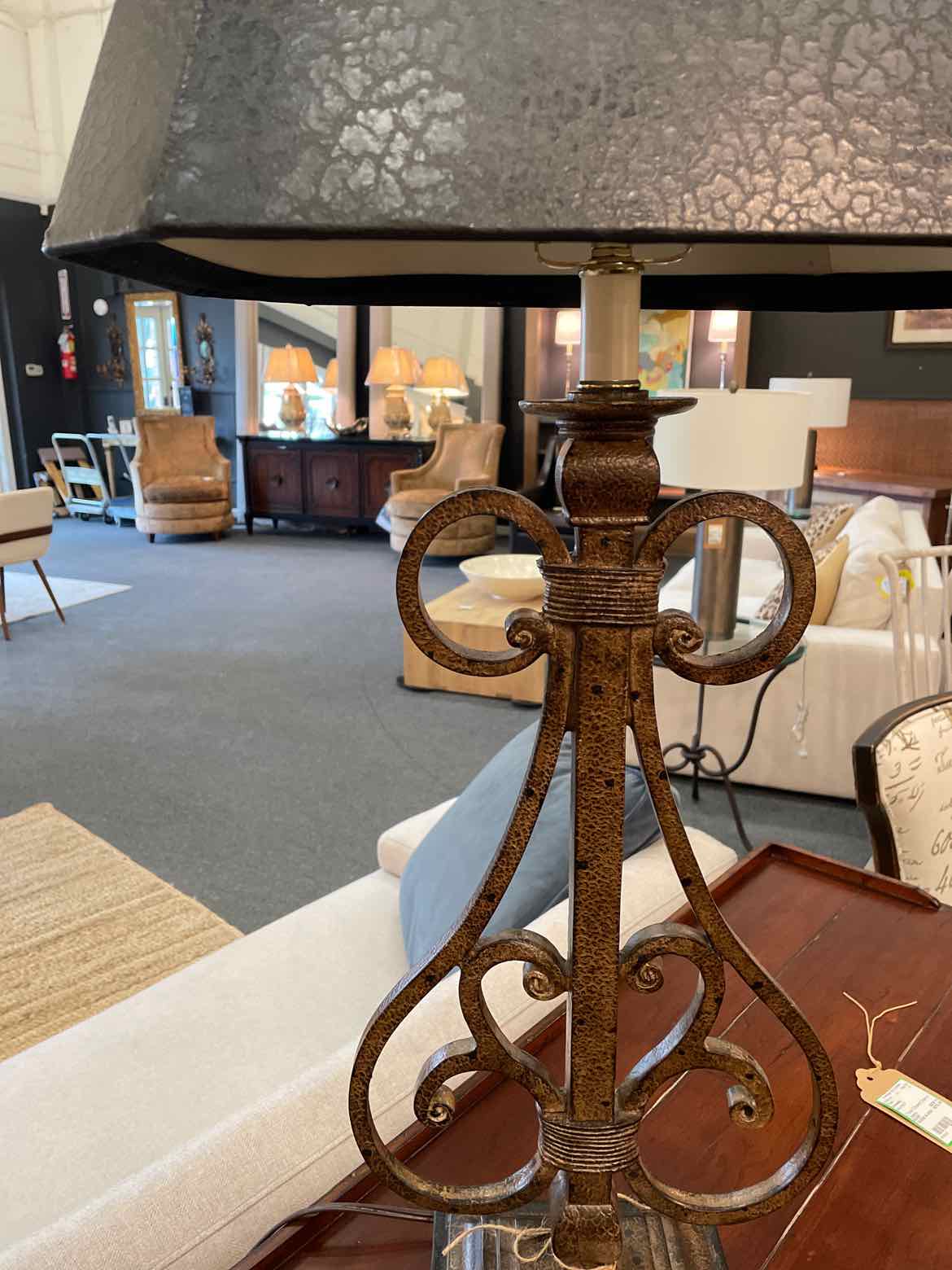 Table Lamp w/Crackled Leather Shade